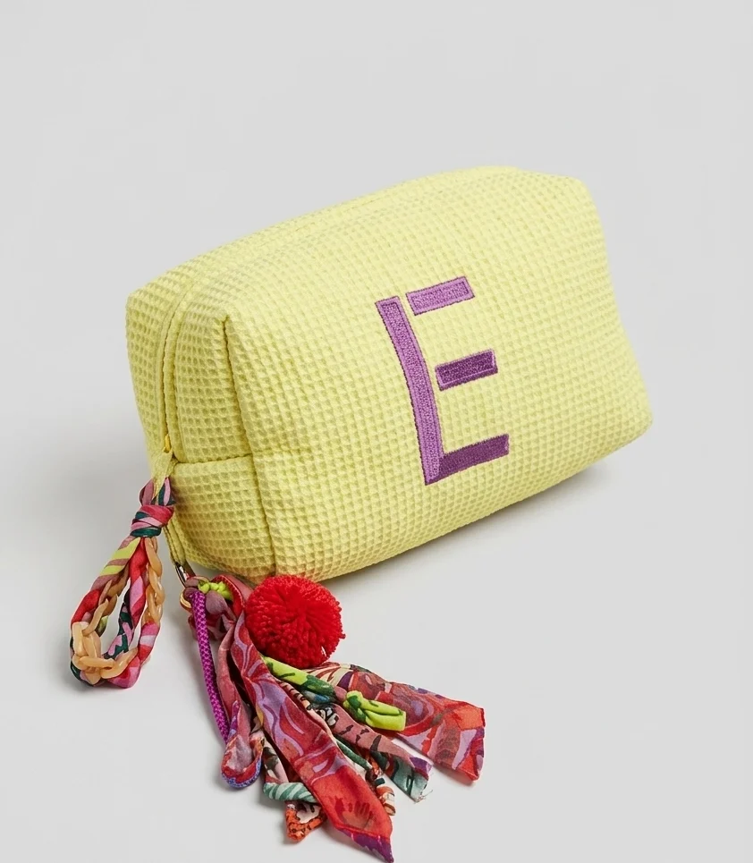 Su carácter único se refleja en los detalles: el llavero con la icónica “E” de la marca, que aporta personalidad y un toque distintivo, convirtiendo el neceser en un accesorio que eleva cualquier look.